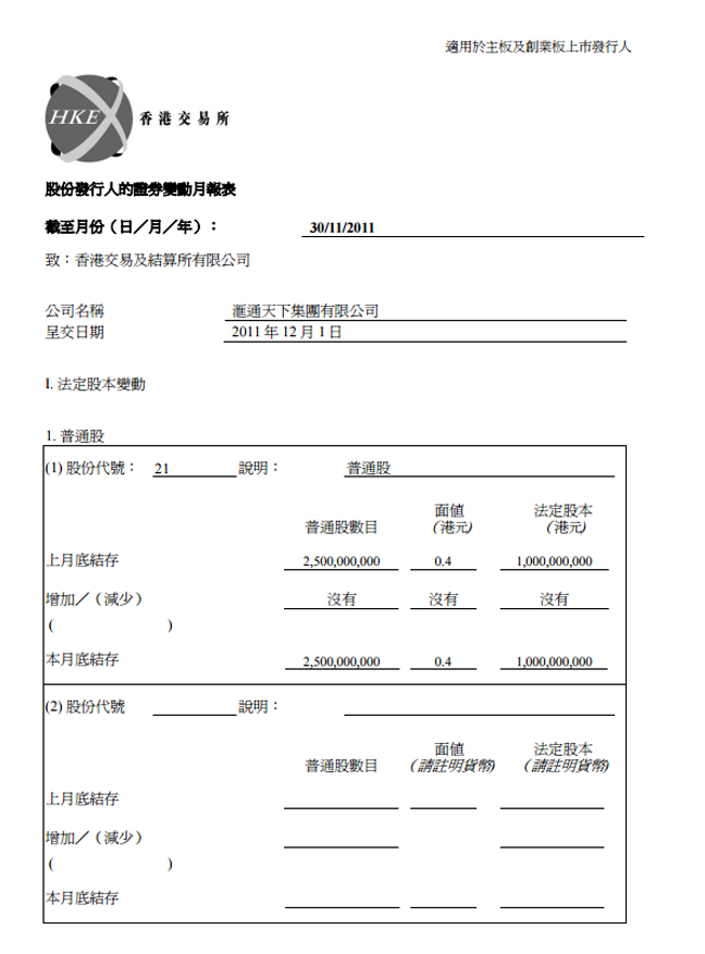 股份發行人的證券變動月報表30/11/2011