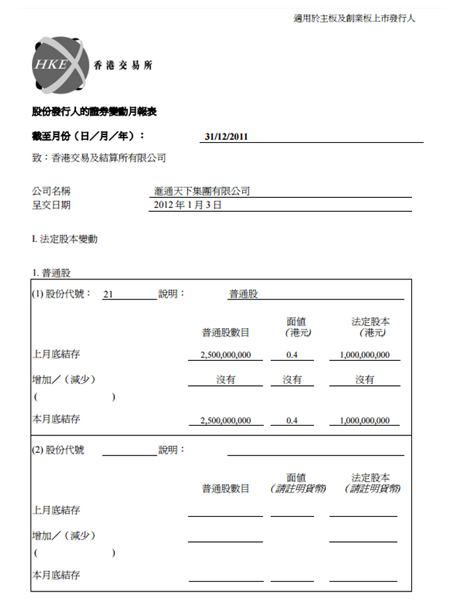 股份發行人的證券變動月報表31/12/2011